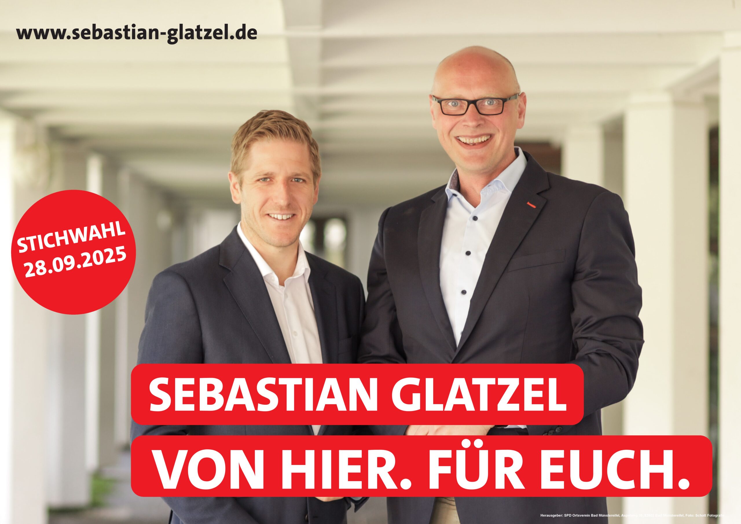 In Bad Münstereifel hat unser Bürgermeisterkandidat Sebastian Glatzel ein überzeugendes Ergebnis erzielt und zieht nun in die Stichwahl um das Amt des Bürgermeisters ein. Gemeinsam können wir Bad Münstereifel in eine gute Zukunft führen – darum am Stichwahlsonntag: Sebastian Glatzel wählen!